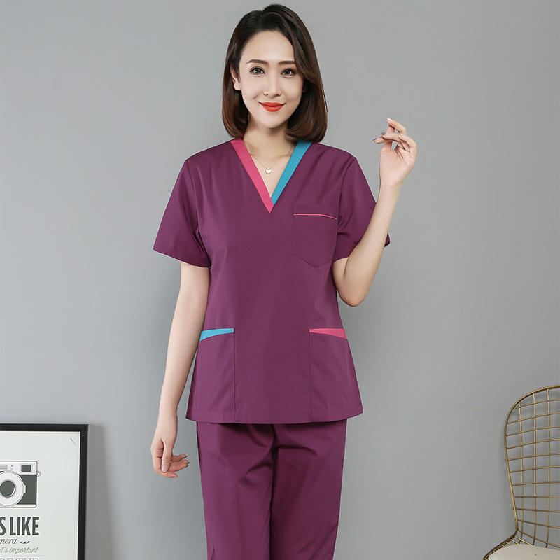 Dokter Suster kecantikan kain biasa sikat tangan baju lengan pendek rumah sakit V-neck pakaian dalam lengan panjang sikat tangan pakaian