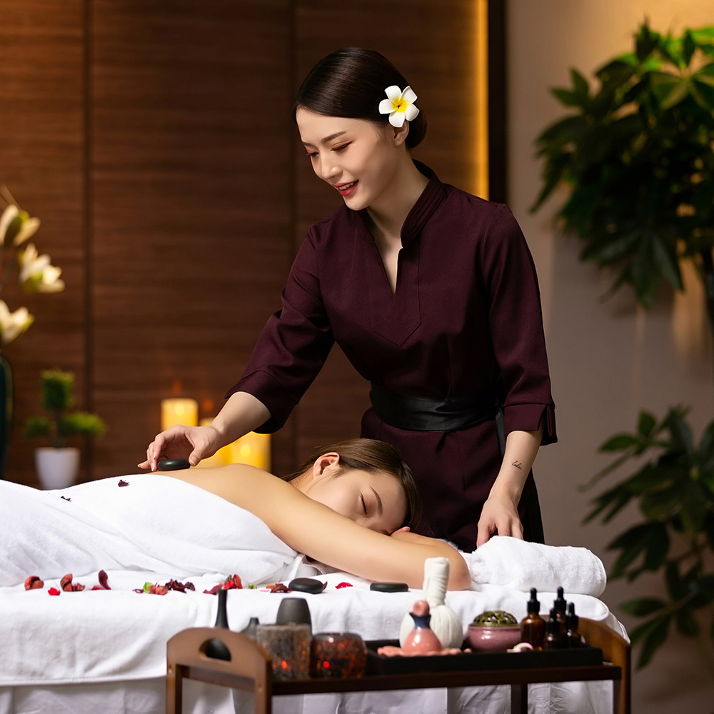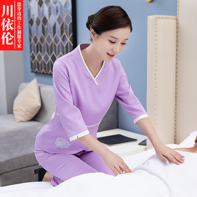 Pakaian kerja teknisi mandi kaki wanita, pakaian kerja spa kelas atas musim gugur, seragam setelan pelayan hotel Pusat Kesehatan salon kecantikan
