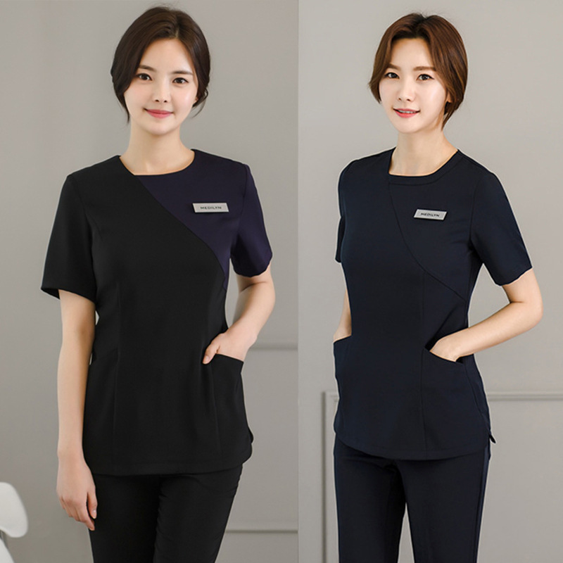Setelan baju lengan pendek, setelan baju lengan pendek, pakaian mandi wanita, pedikur, klub kesehatan, pakaian kerja manajemen kulit, salon kecantikan gaya Korea, baru