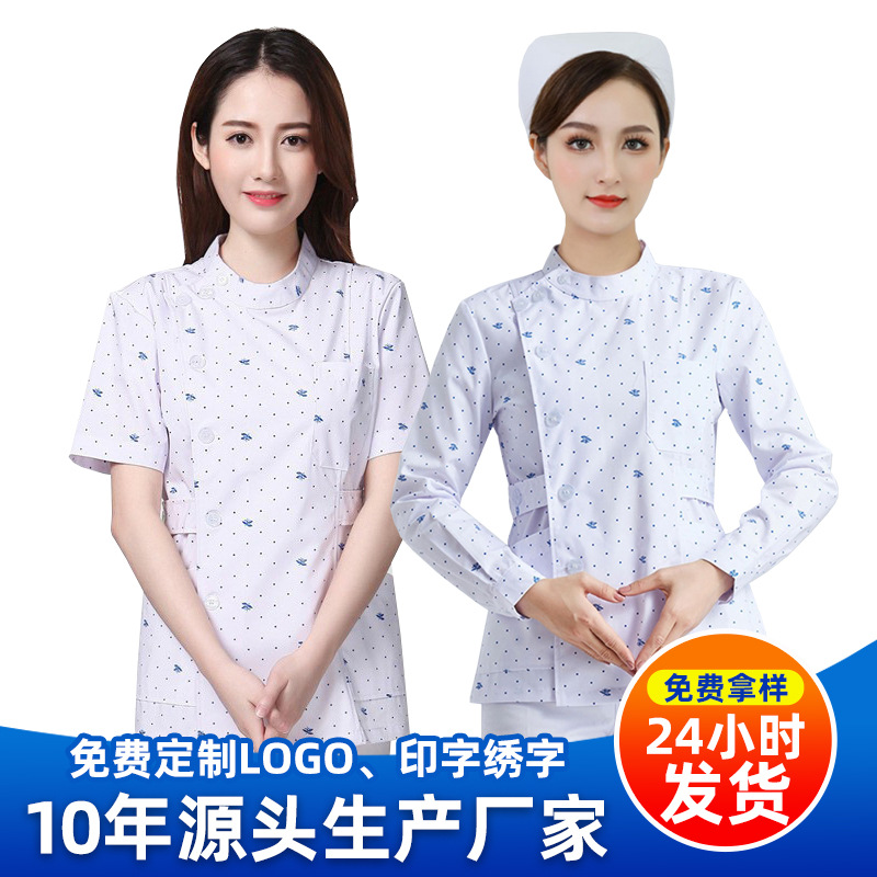 Berdiri kerah lengan pendek gaun bunga kecil kecil wanita Suster kecantikan confinement pusat farmasi pakaian kerja musim dingin dan musim panas
