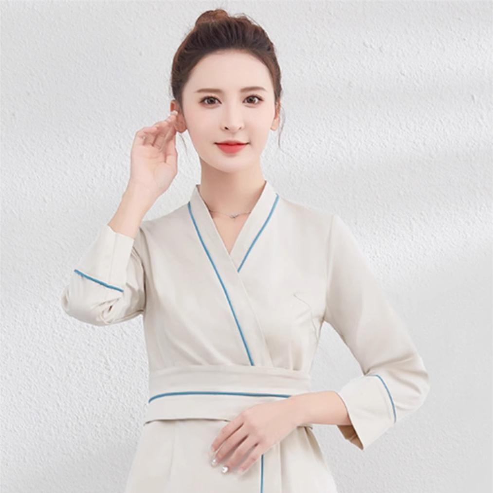 Seragam kerja spa ahli kecantikan pakaian teknisi klub kesehatan spa ruang pijat wanita baju kerja diperpanjang spa