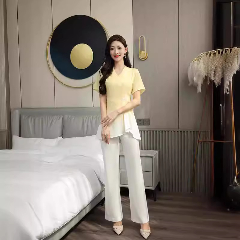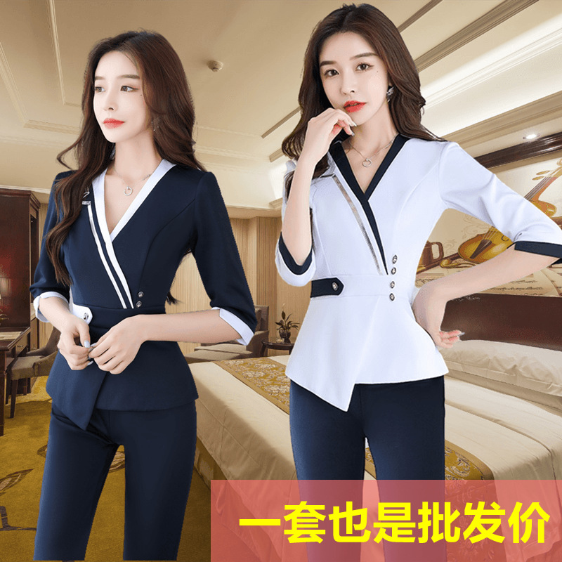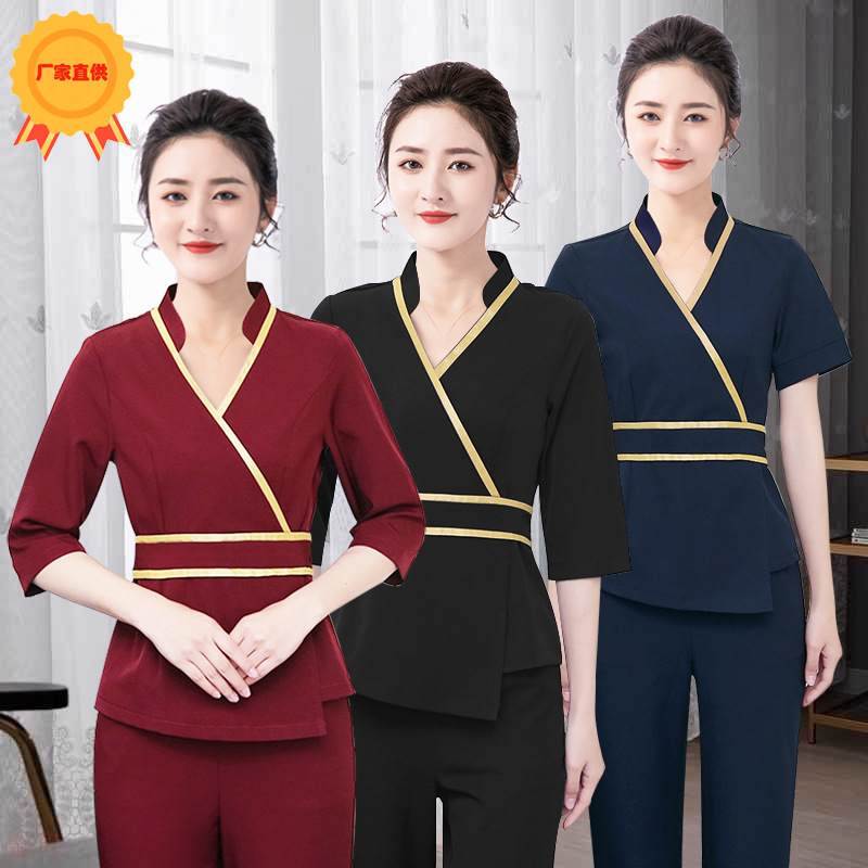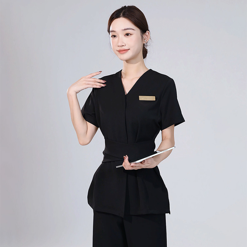 Setelan Profesional Lengan Pendek Pakaian Teknisi Mandi Pedikur Musim Semi Musim Panas Wanita Pakaian Kerja Elegan Salon Kecantikan Hotel 8910