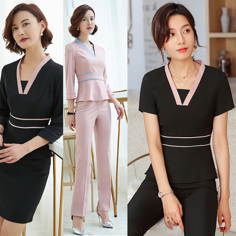 Baju kerja manajer meja depan salon kecantikan, baju kerja toko pijat kaki kesehatan Klinik Gigi medis