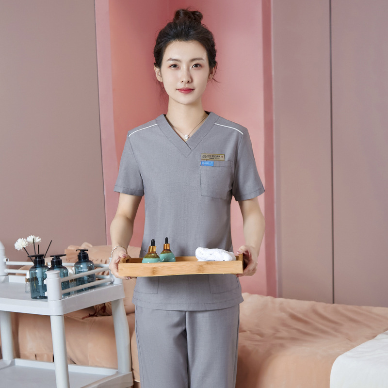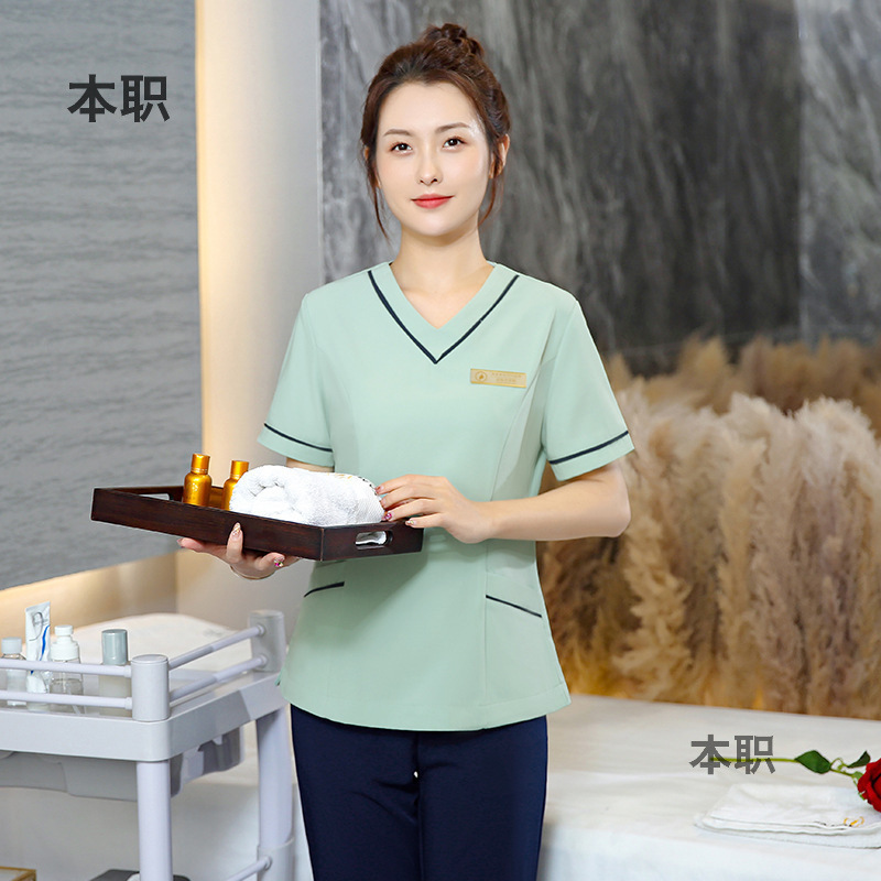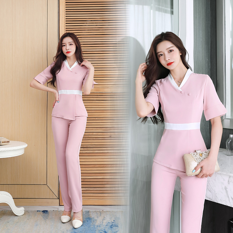 Dongguan setengah lengan pakaian kesehatan saudara perempuan pakaian perawatan hukum pakaian kerja ahli kecantikan salon kecantikan wanita pakaian bisnis pakaian sauna