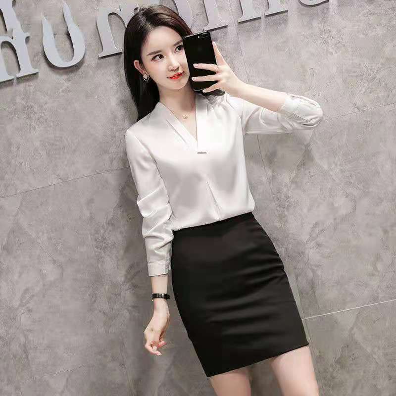 Baju kerja wanita cantik, baju perawat pelayan kelas atas modis temperamen wanita lengan panjang meja depan salon kecantikan medis