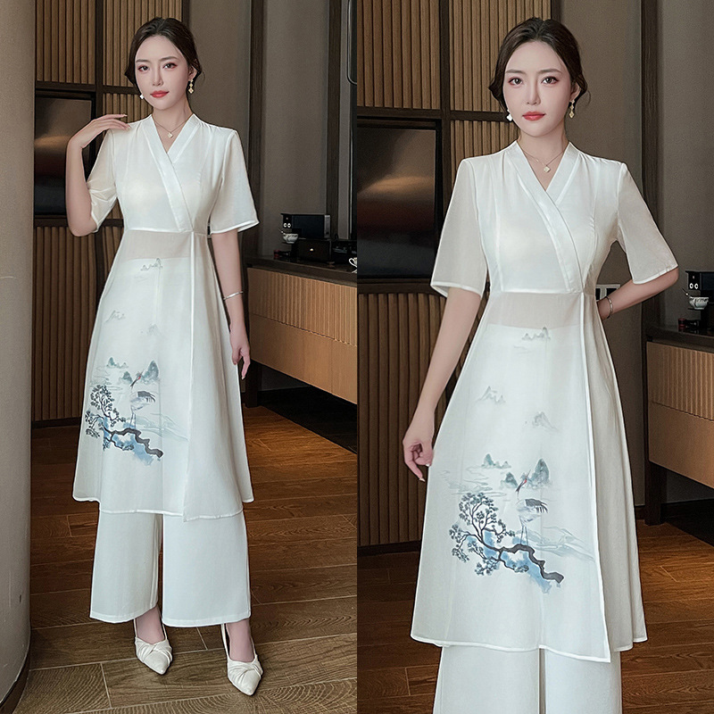 Ahli kecantikan pakaian kerja spa mandi kaki teknisi pakaian kerja gaya nasional bordir pijat kaki seragam pijat kaki setelan celana kerja