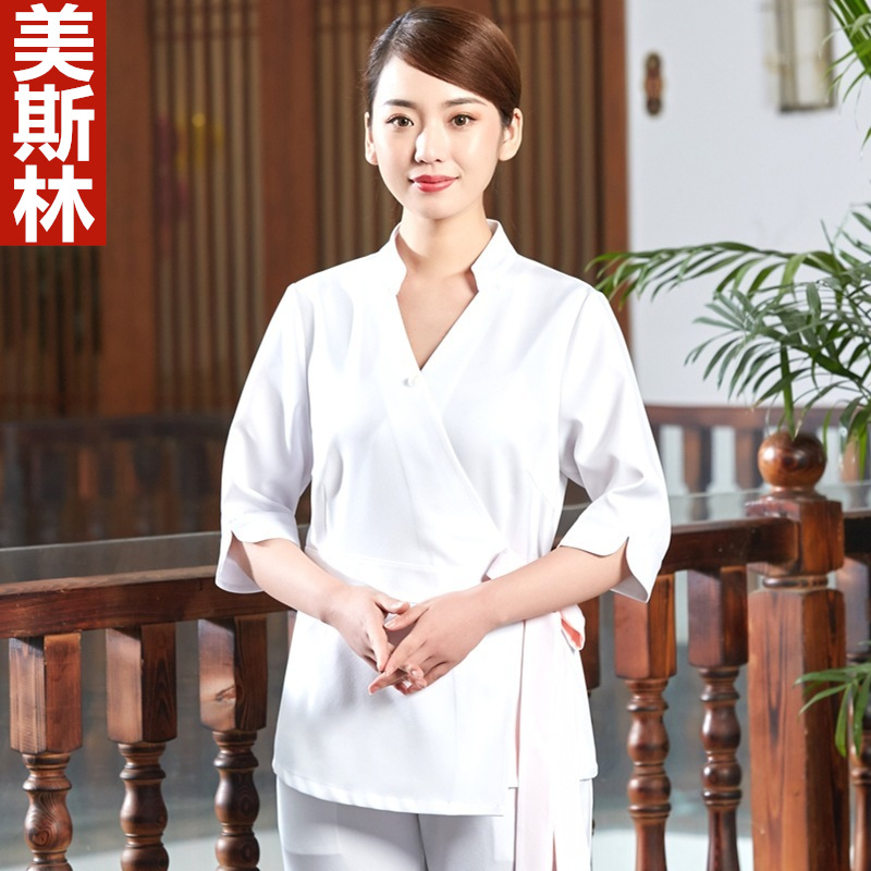Baju kerja salon kecantikan gaya kuno baru baju seni teh seragam pakaian kerja teknisi sauna mandi kaki grosir