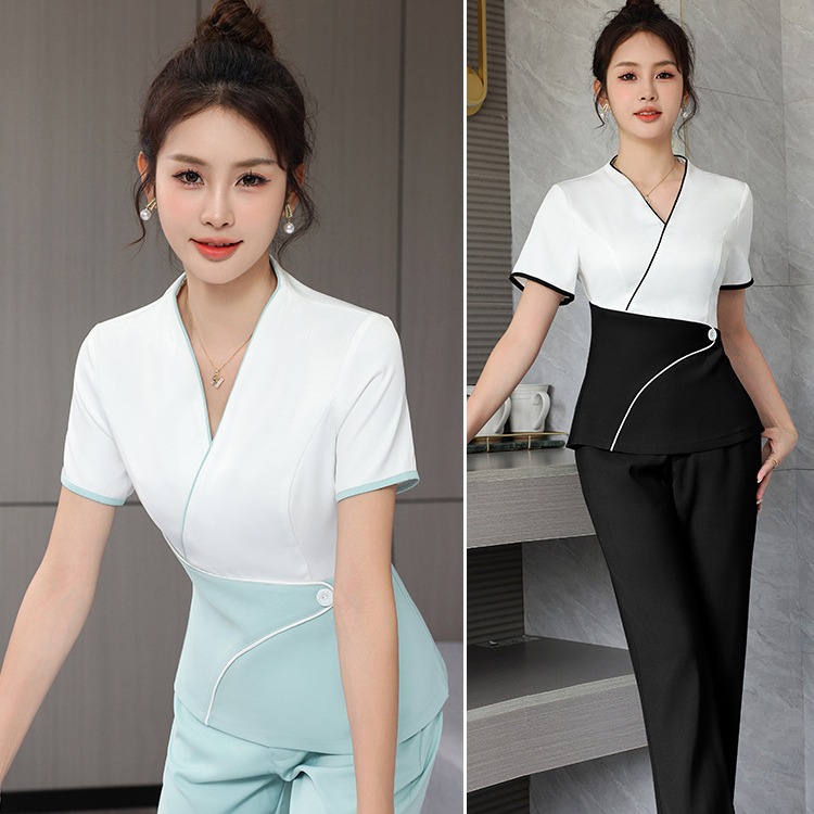 Pakaian Kerja Salon Kecantikan Wanita Musim Panas 2025 Model Baru Temperamen High-end Pijat Mandi Kaki Kesehatan Pakaian Teknisi Perawatan Kaki 1023