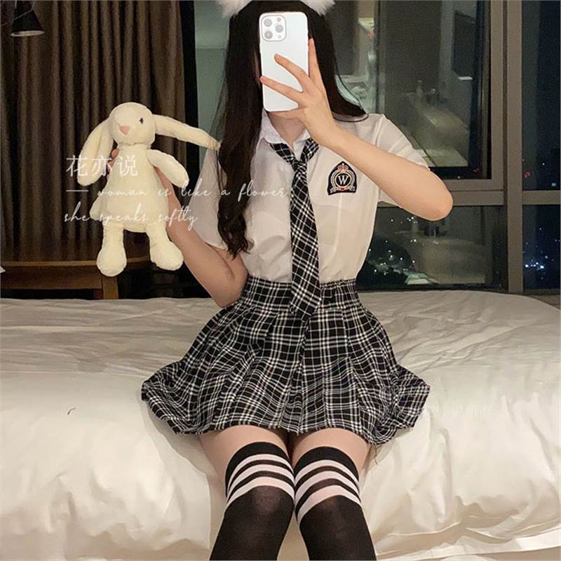Terang cinta gadis sekolah menunggu Anda untuk pergi ke rumah kotak-kotak seksi jk seragam pure desire suit gaya kuliah piyama panas dapat dipakai di luar