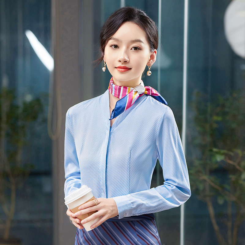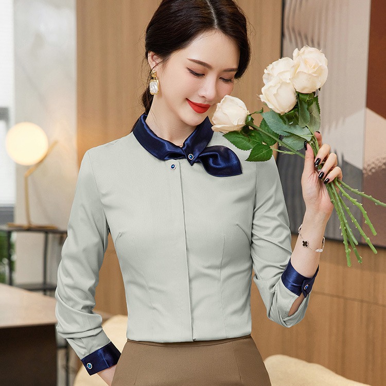 Pakaian kerja meja depan Hotel seragam pramugari OL pakaian kerja ahli kecantikan kemeja toko emas wanita kemeja profesional lengan panjang
