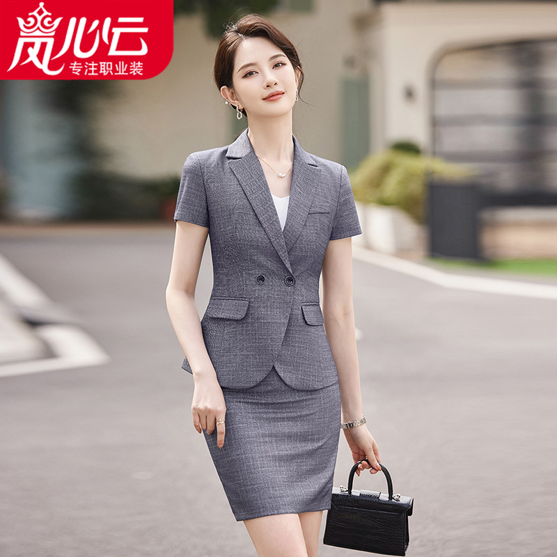 Setelan pakaian bisnis pramugari lengan pendek, pakaian formal rok ol pakaian kerja elegan gaya dewi kelas atas 1531