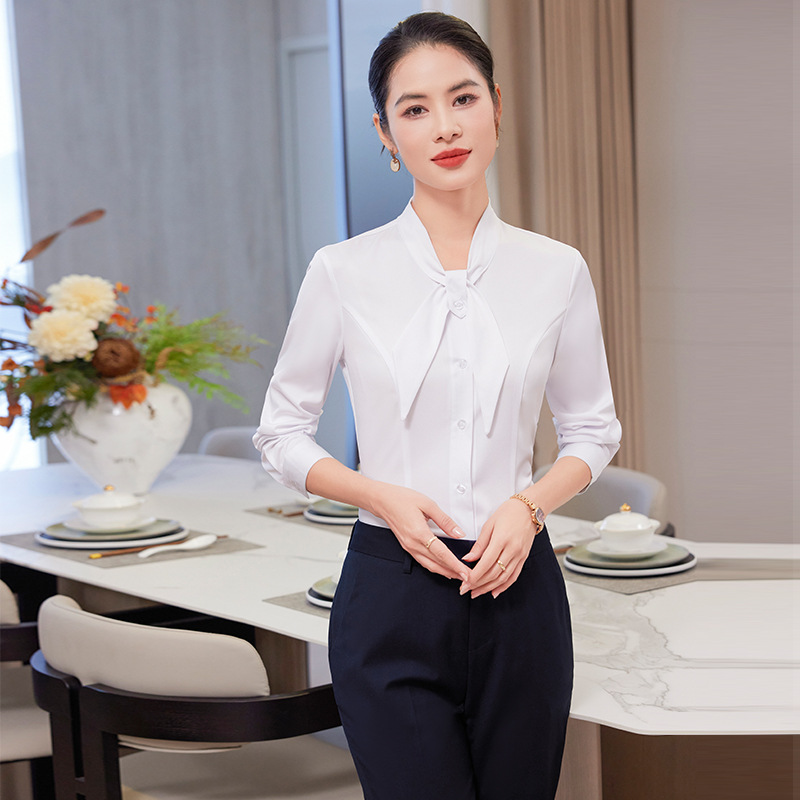 Kemeja Putih Slim Fit Pakaian Kerja Wanita Pramugari Meja Depan Hotel Kecantikan Departemen Penjualan Toko Perhiasan Medis Pakaian Profesional
