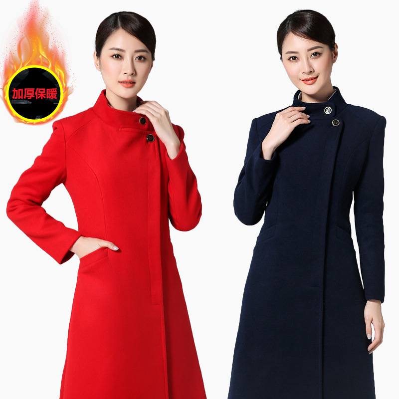 Air China mantel wol pramugari wanita, pakaian kerja departemen penjualan rumah sakit mantel tebal setengah panjang musim dingin