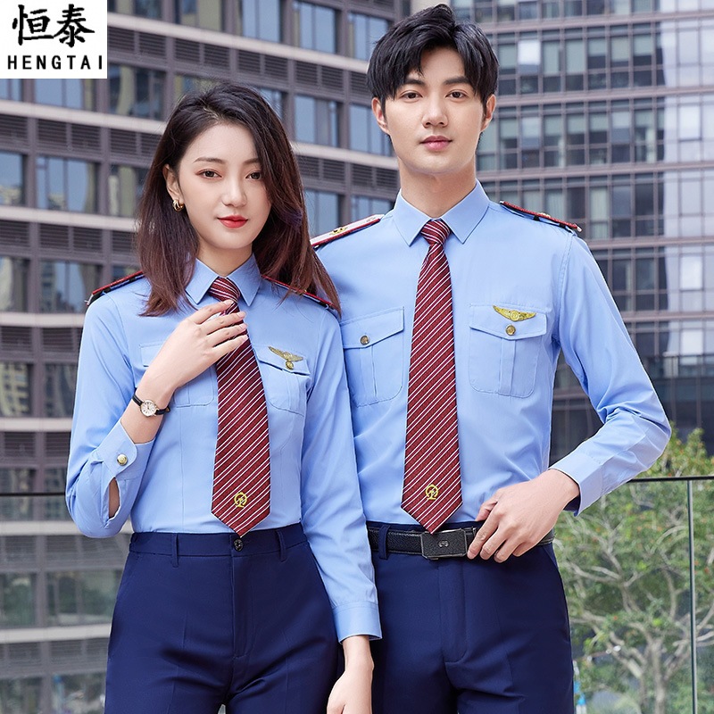 Seragam kereta api kemeja lengan pendek panjang kemeja pramugari properti keamanan pria dan wanita pakaian kerja rel kecepatan tinggi yang sama musim semi