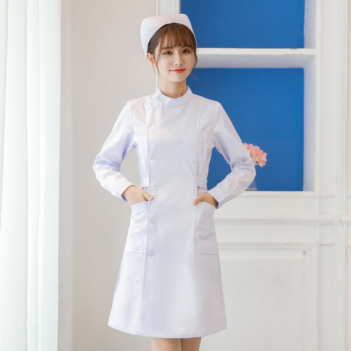 Pakaian Perawat Lengan Panjang Kerah Boneka Pakaian Perawat Toko Obat Wanita Pakaian Kerja Perawat Salon Kecantikan Lengan Pendek