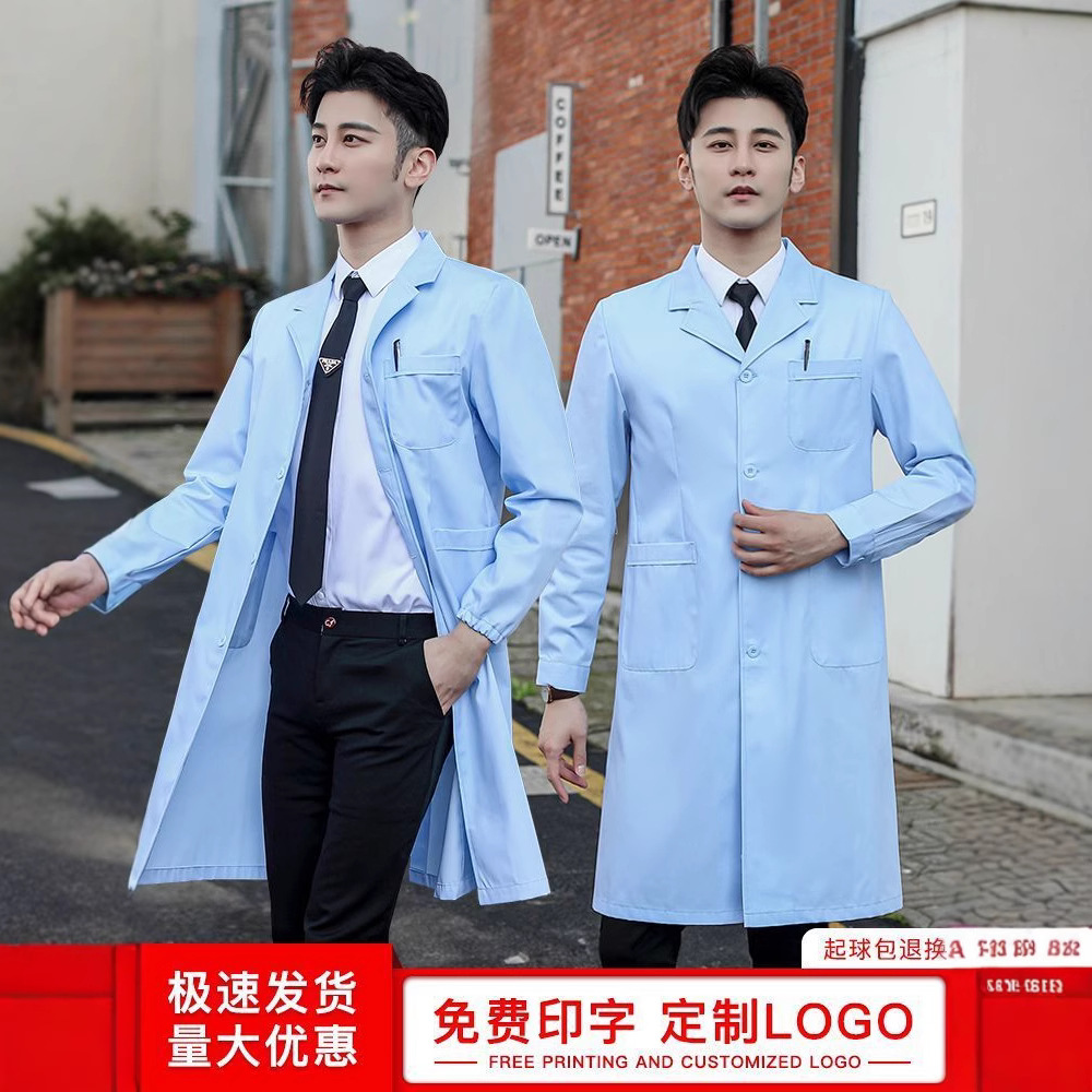 Pakaian Dokter Biru Jaket Putih Lengan Panjang Biru Jaket Putih Pakaian Eksperimental Kimia Lengan Elastis Pakaian Kerja Gigi Mulut