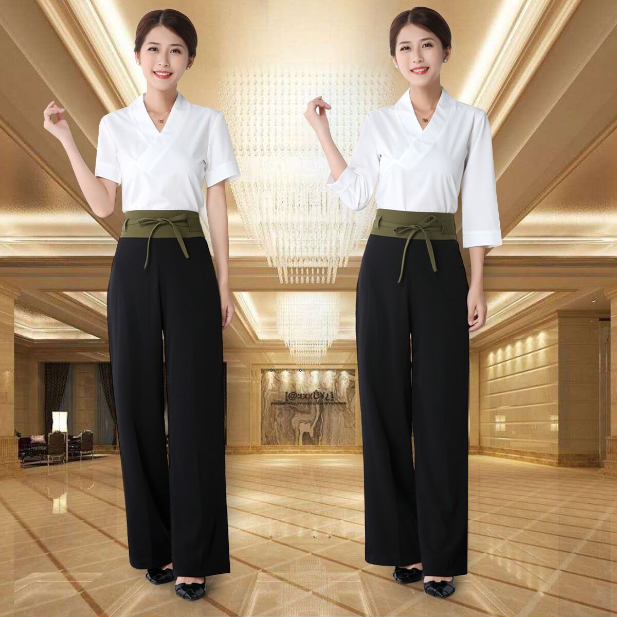 SPA Set Pakaian Kerja Teknisi Elegan Pakaian Kerja Musim Panas Model Baru Perawatan Kaki Pakaian Kerja Klub Malam Wanita Terlihat Langsing