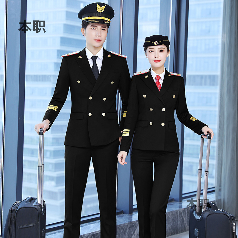 Seragam sekolah penerbangan untuk pria dan wanita, setelan profesional formal, pakaian pramugari musim gugur dan musim dingin, seragam awak kereta api berkecepatan tinggi.