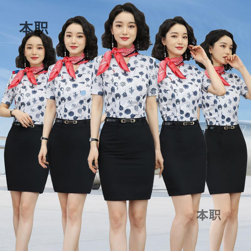 China Eastern Airlines pramugari seragam biru dan putih porselen salon kecantikan profesional baju ketat hotel depan meja kemeja staf wanita pakaian kerja