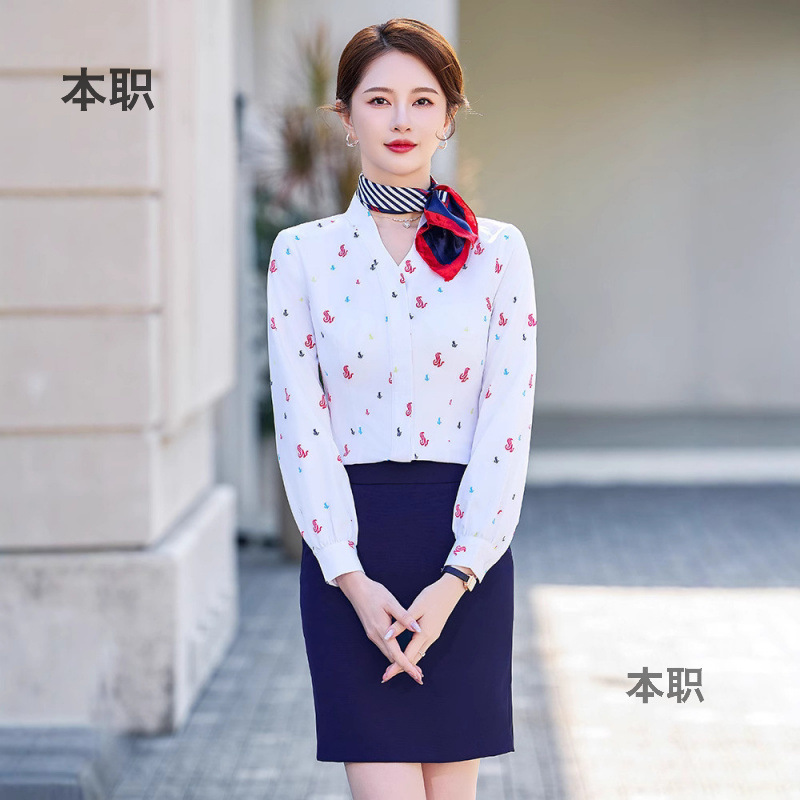 Pakaian kerja meja depan Hotel seragam pramugari OL pakaian kerja ahli kecantikan kemeja toko emas wanita kemeja profesional lengan panjang