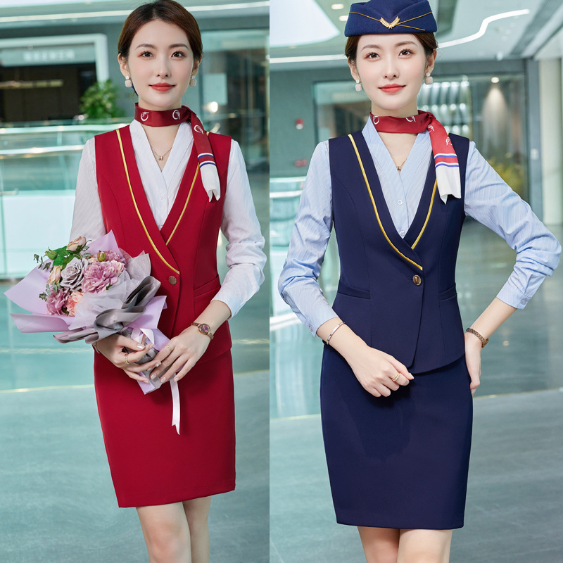 Setelan pakaian bisnis profesional pria dan wanita pramugari seragam rompi yang sama rel kecepatan tinggi pramugari hotel pakaian kerja meja depan