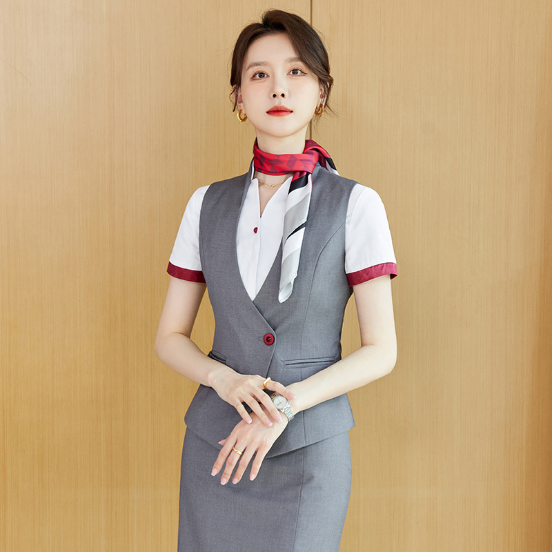 Seragam pramugari rompi wanita setelan Hotel selamat datang temperamen depan meja kecantikan rel kecepatan tinggi penjualan pakaian kerja profesional