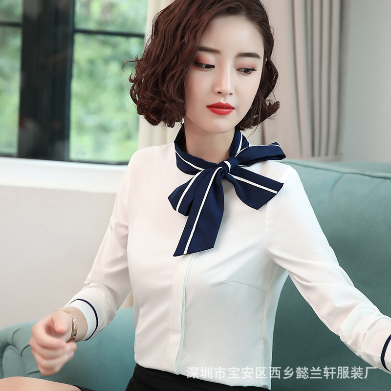 Pakaian kerja meja depan Hotel seragam pramugari OL pakaian kerja ahli Kecantikan perhiasan panduan belanja kemeja Wanita setelan profesional lengan panjang