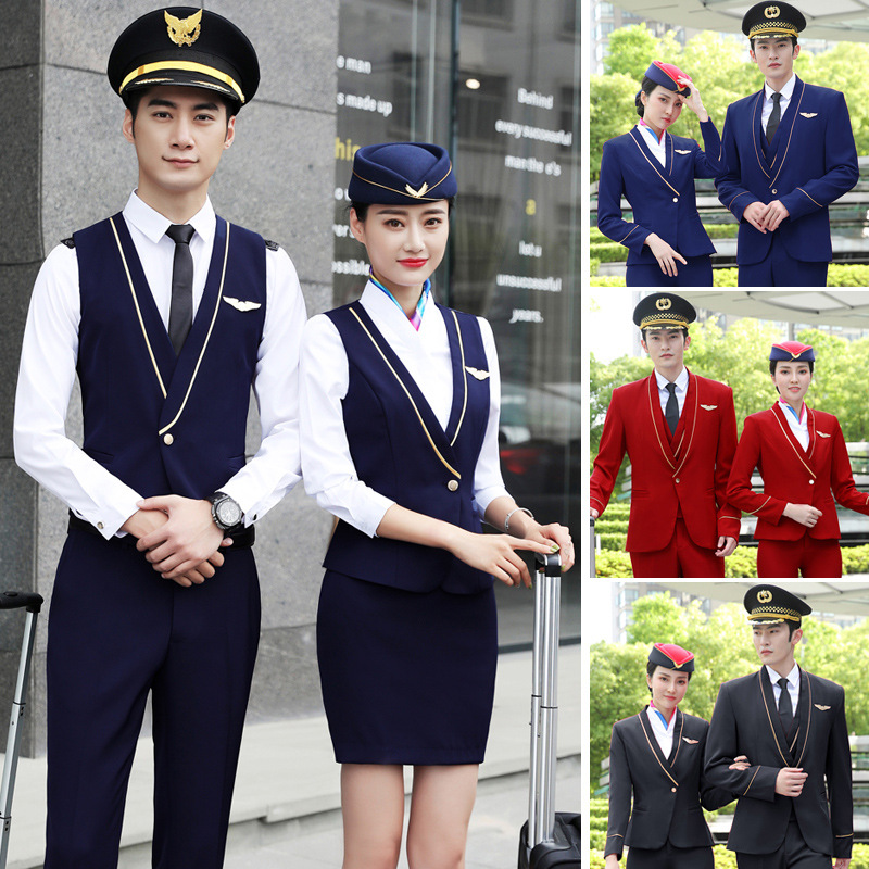 Setelan Pakaian Profesional Seragam Pramugari Berkecepatan Tinggi Musim Semi dan Musim Gugur Seragam Pelayan Meja Depan Hotel Rompi Model Sama Pria dan Wanita