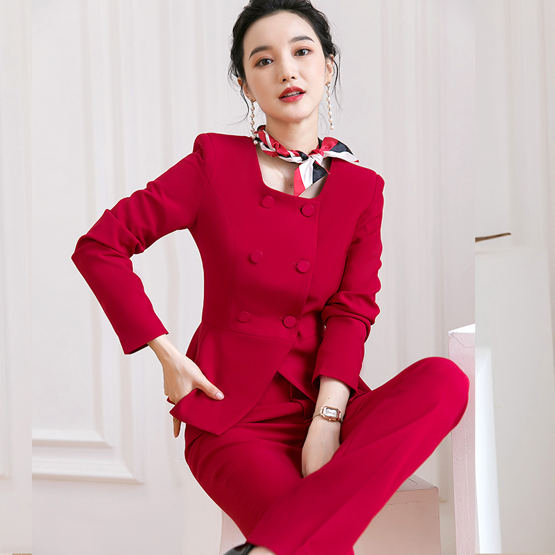 Setelan pakaian profesional kelas atas musim gugur dan musim dingin baru pakaian kerja akademi kecantikan perhiasan hotel meja depan pakaian formal seragam pramugari
