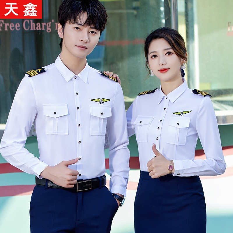 Seragam pramugari profesional pria dan wanita, pakaian kerja yang sama musim semi dan musim gugur, pakaian latihan sekolah seni penerbangan, pakaian kerja meja depan hotel