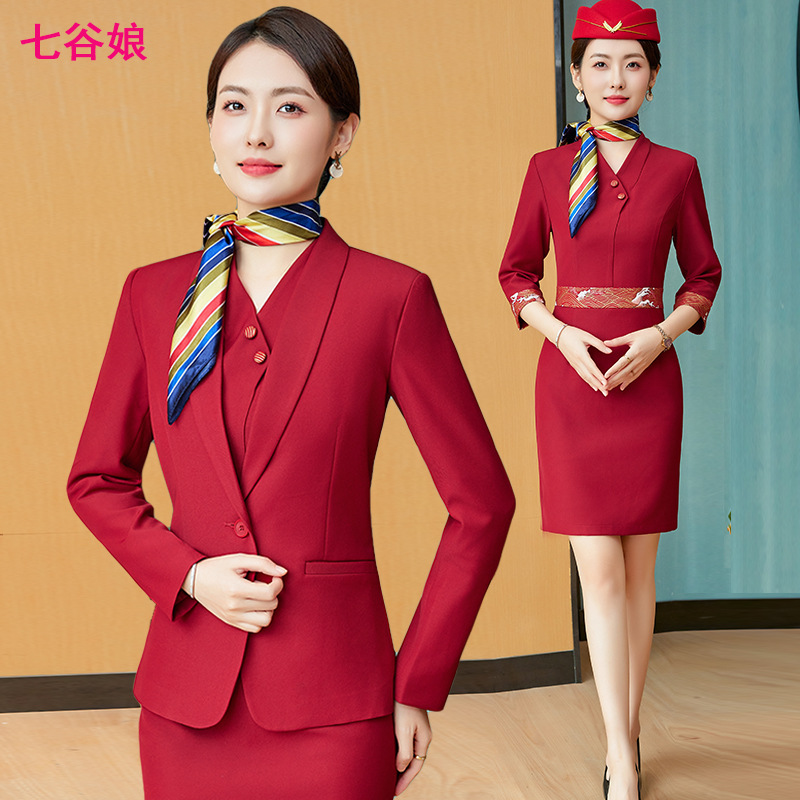 Seragam pramugari setelan profesional pakaian kerja kelas atas perempuan maskapai selatan rel kecepatan tinggi properti penjualan perhiasan hotel pakaian kerja meja depan