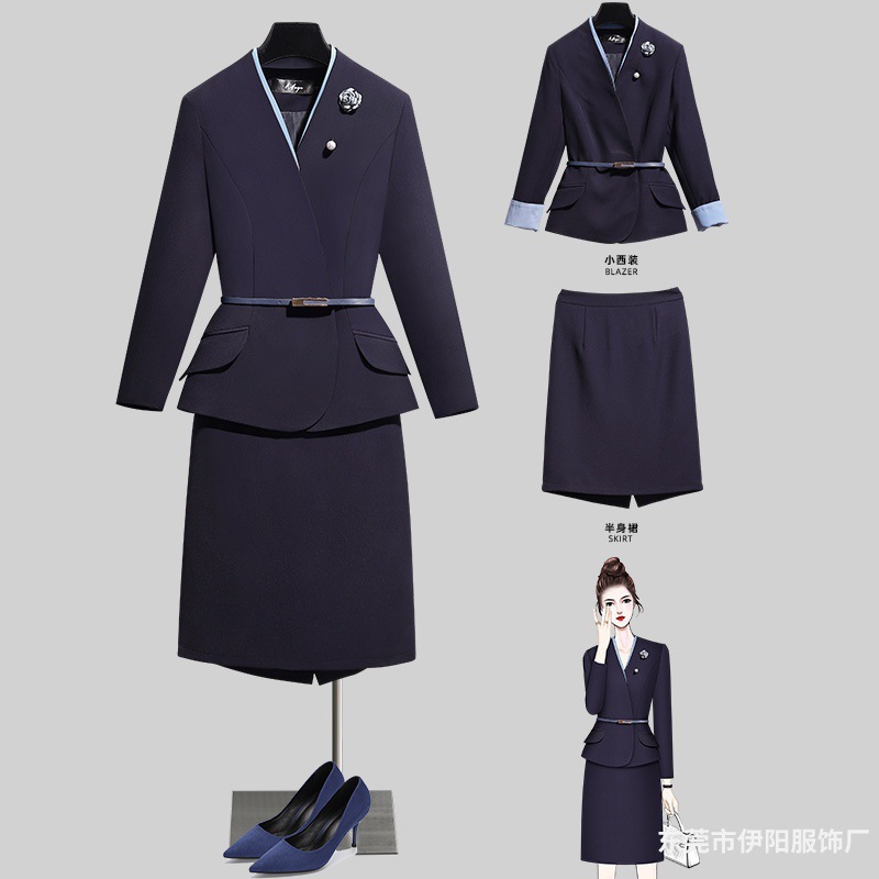 Setelan pakaian profesional kelas atas musim gugur dan musim dingin baru pakaian kerja akademi kecantikan perhiasan hotel meja depan pakaian formal seragam pramugari
