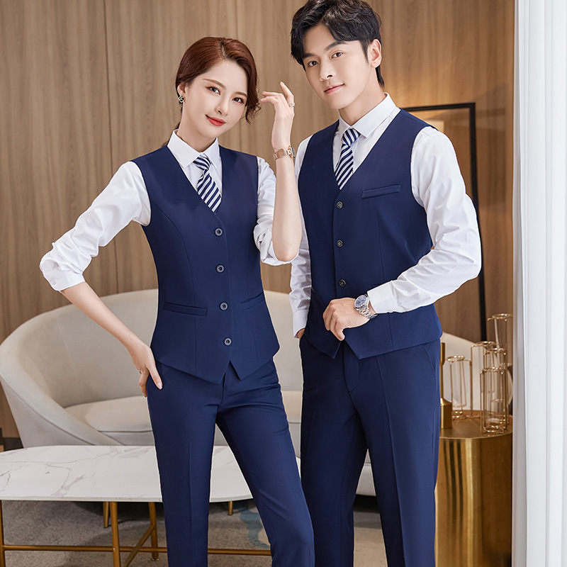 Setelan rompi profesional, pakaian kerja pelayan hotel wanita, pakaian seragam pramugari, pakaian formal meja depan salon kecantikan