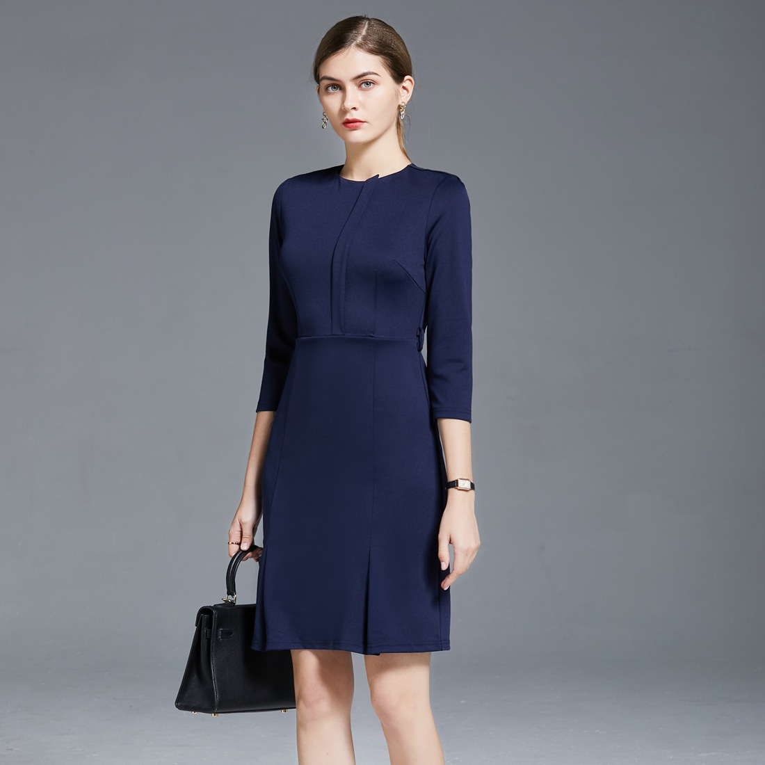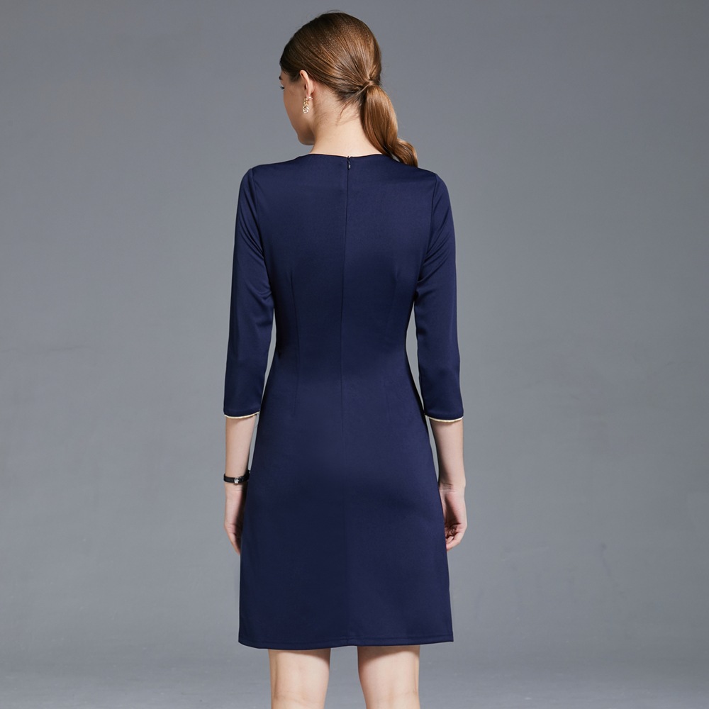 Pakaian bisnis Lengan sedang Musim Semi 2023 gaun ketat peregang pramugari wanita meja depan busana salon kecantikan seragam biru gelap