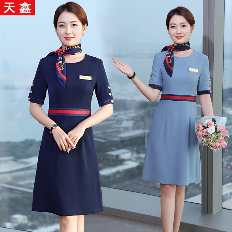 Pakaian profesional pramugari gaun temperamen fashion wanita setelan baju kerja ahli kecantikan musim panas meja depan departemen penjualan
