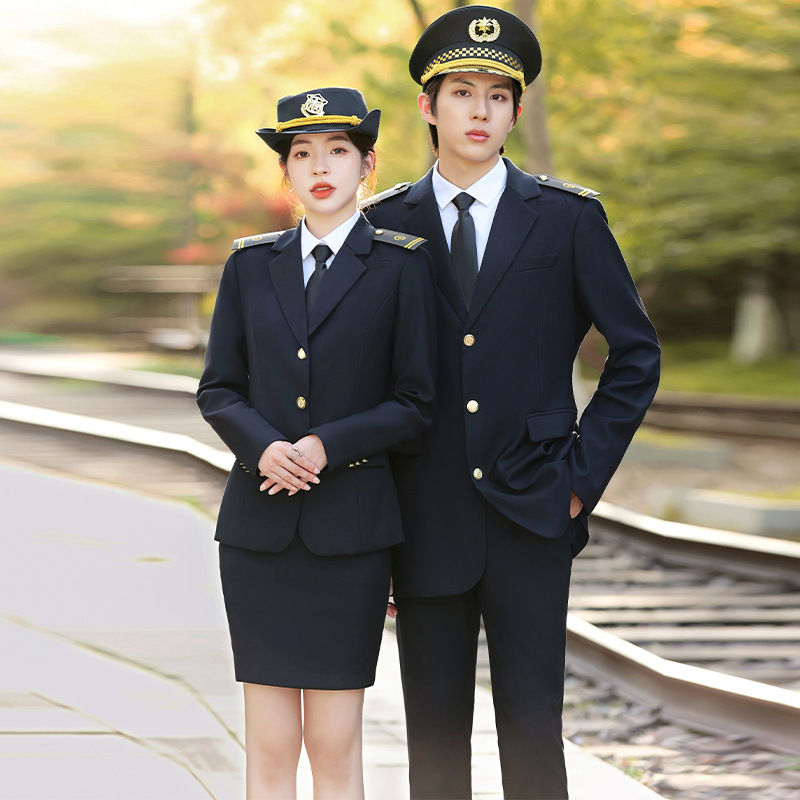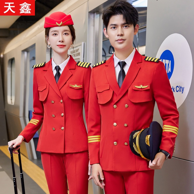 Setelan kostum pertunjukan pita drum tentara gaya sama pria dan wanita kostum pramugari kereta api tinggi kapten pramugari siswa overall
