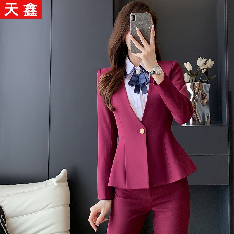 Pramugari setelan profesional setelan bisnis wanita pakaian formal hotel depan meja manajer penjualan departemen perhiasan toko profesor overall
