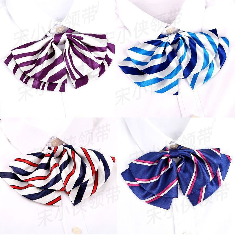 Dasi Kupu-Kupu Lapisan Ganda Dasi Kupu-Kupu Kecil Wanita Bank Pramugari Pakaian Kerja Pakaian Profesional Kancing Kancing Bunga