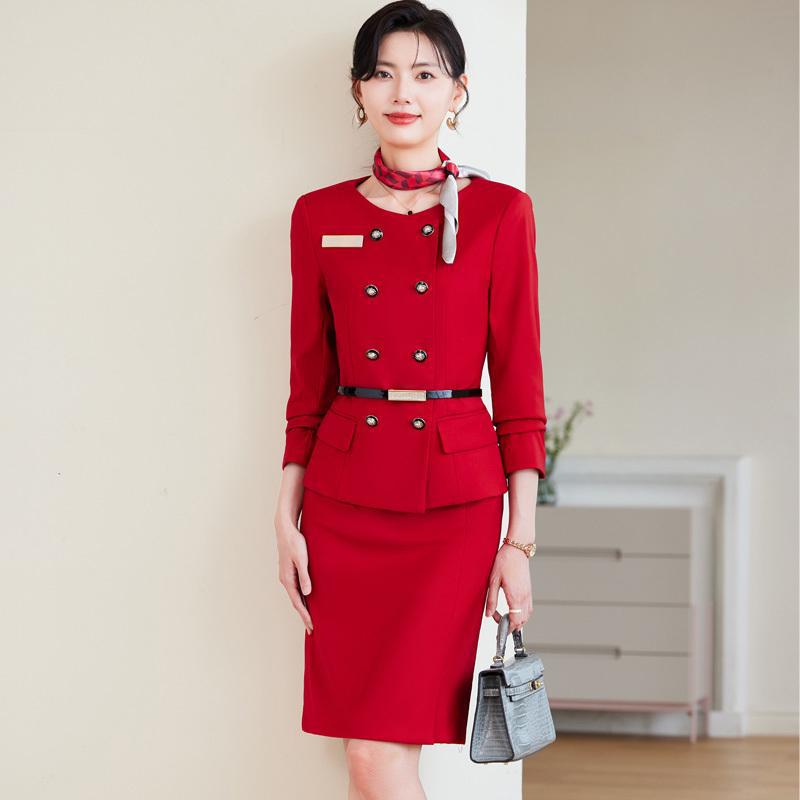 Seragam pramugari setelan profesional dewi penggemar musim gugur dan musim dingin temperamen hotel meja depan penerimaan pakaian formal ahli kecantikan
