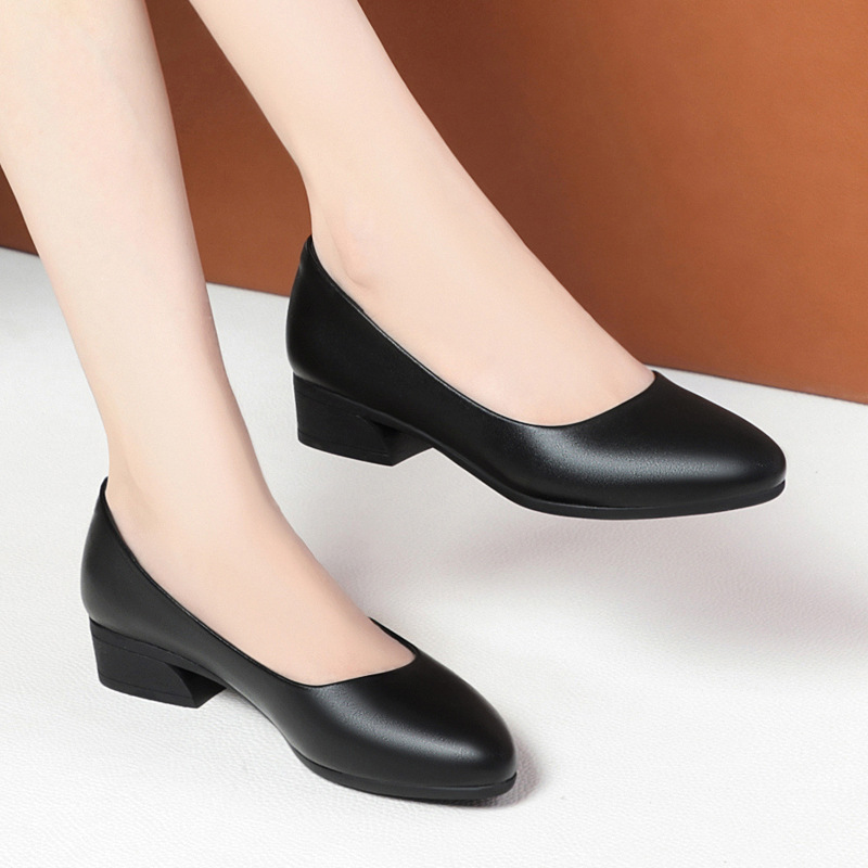 Sepatu kerja hitam 2024, sepatu pakaian kerja, sepatu wawancara, sepatu pramugari, sepatu kulit hak tinggi profesional berujung bulat dengan sol empuk, serbaguna dan bernapas