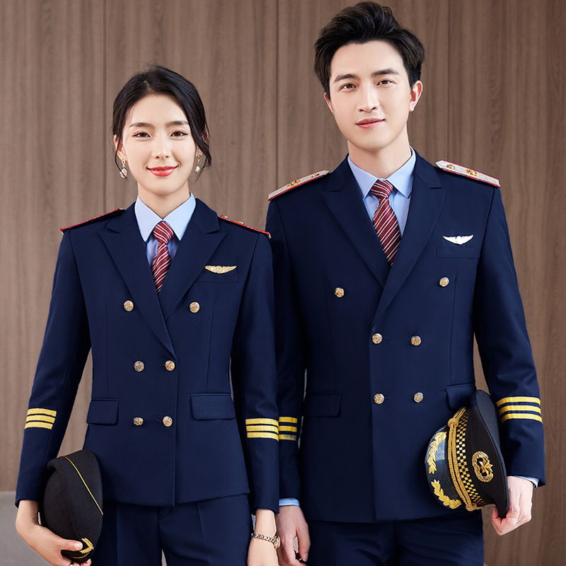 Setelan sama pria dan wanita, seragam pramugari seragam sekolah pilot penerbangan, petugas penerbangan rel kecepatan tinggi
