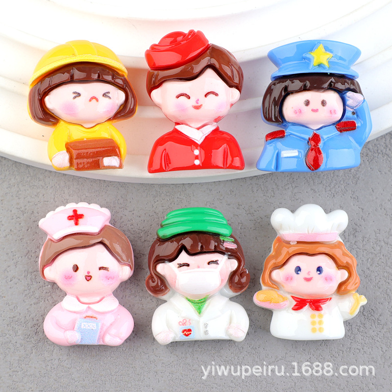 Pramugari seragam perawat anak perempuan buatan rumah lem krim casing ponsel aksesori resin DIY hiasan kepala aksesoris rambut bahan jepit rambut