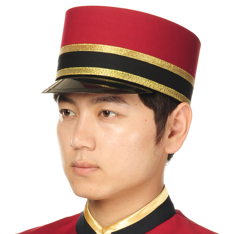 Topi pengiring pintu Hotel pria, topi seragam kantor pita pintu, topi etiket kerja