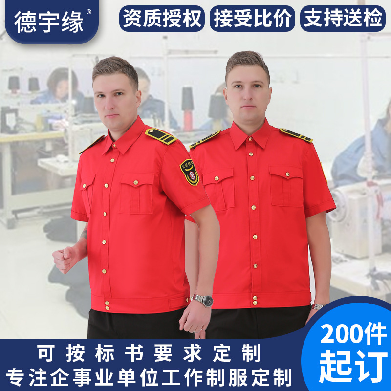 Pakaian keamanan properti merah lengan pendek keamanan pria pintu hotel pakaian kerja musim panas merah pakaian keamanan gambar pos