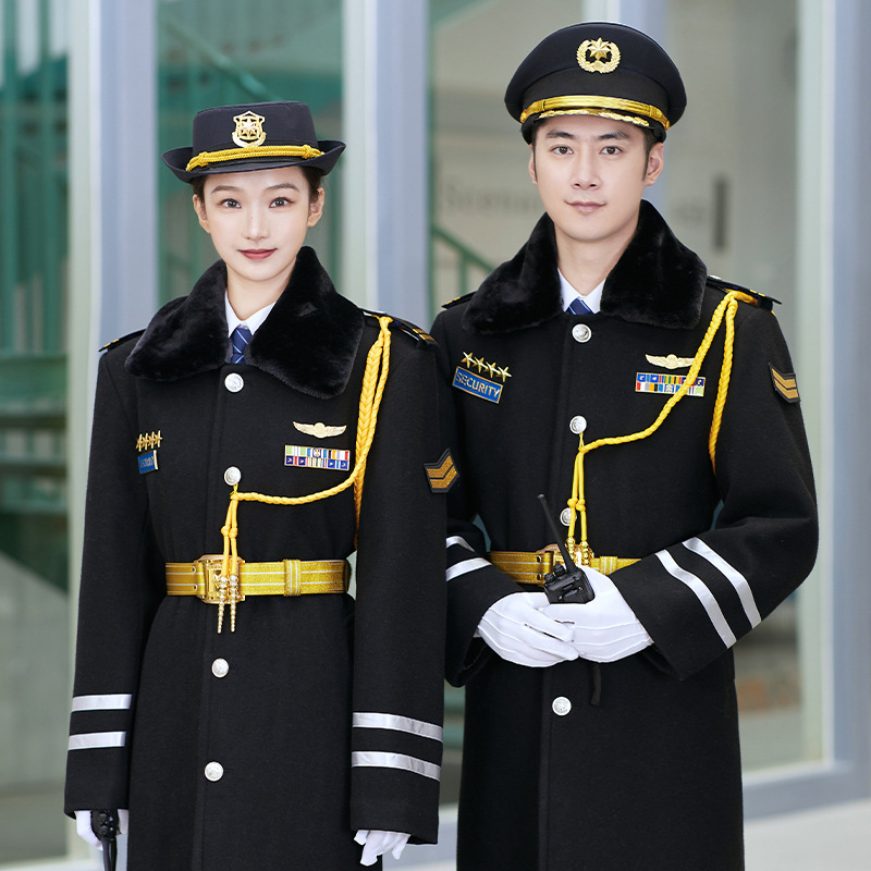 Pakaian Selamat Datang doorman Hotel mantel wol panjang Properti gambar pos seragam keamanan plus beludru katun overall