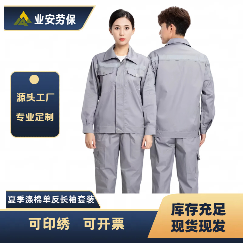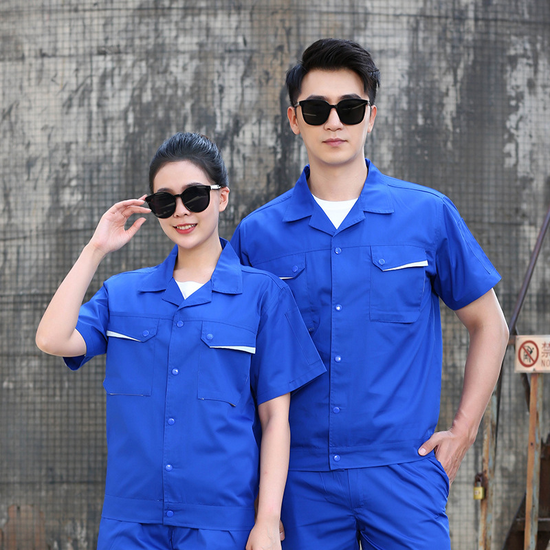 Setelan pakaian kerja katun murni, katun murni musim panas menyerap keringat tipis setelan pria dan wanita pabrik pakaian kantor pakaian bisnis pakaian kerja perlindungan tenaga kerja pabrik grosir