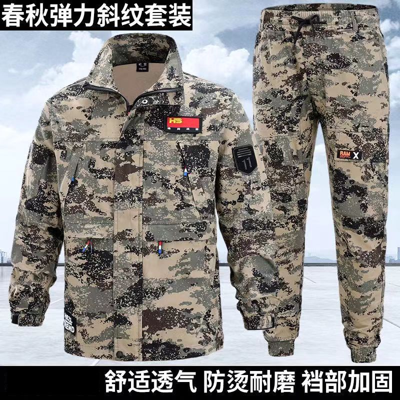 Pabrik grosir musim semi dan musim gugur kamuflase setelan pakaian menebal tahan noda pakaian kerja tahan aus luar ruangan perlindungan tenaga kerja pakaian kerja satu potong pengiriman