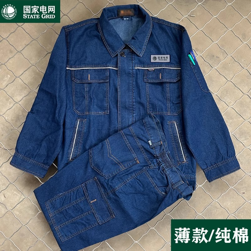 Setelan Pakaian Kerja Jeans Grid Nasional Musim Panas Pakaian Asuransi Tenaga Kerja Tukang Las Listrik Biro Catu Daya Tipis Pria Musim Semi Musim Gugur dan Musim Dingin