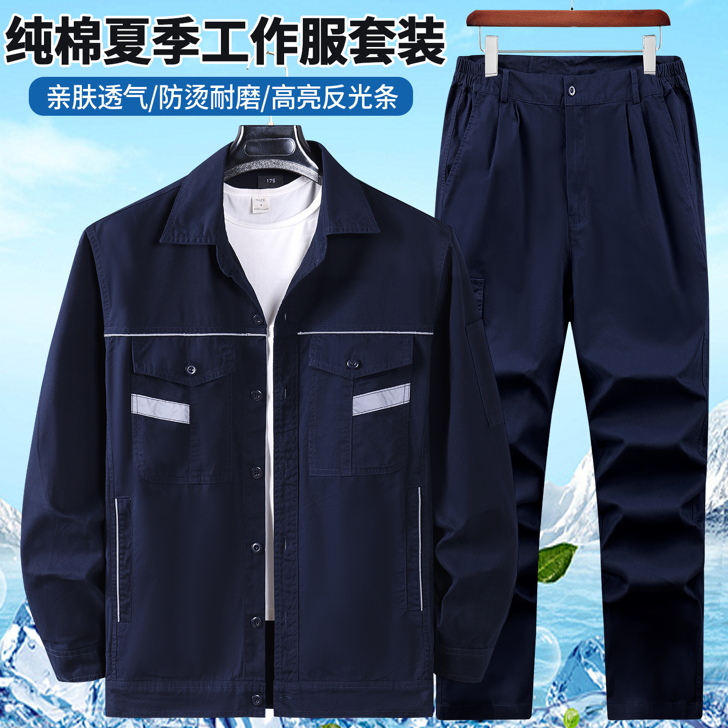 Set Pakaian Kerja Pakaian Kerja Musim Panas Katun Murni Twill Halus Pakaian Kerja Pria Lengan Panjang Tipis Pakaian Pelindung Kerja Anti Panas Strip Reflektif