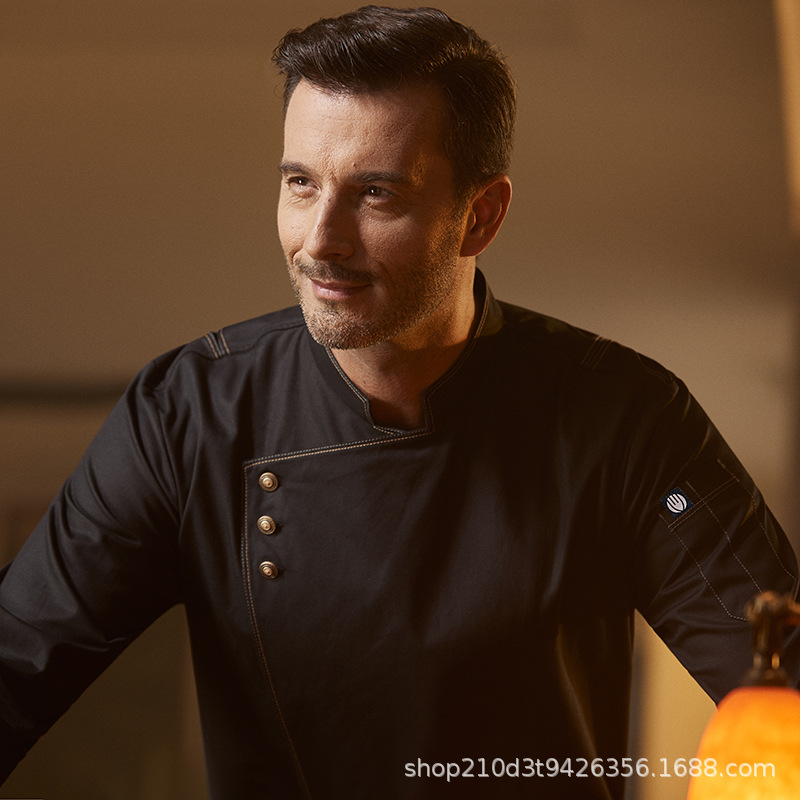 Pakaian Kerja Koki Zhenyao Set Pakaian Kerja Koki Hotel Kelas Atas Restoran Katun Murni Lengan Panjang Pria